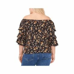 Flash Sale โ Vince Camuto Plus Size Printed Off-The-Shoulder Balloon-Sleeve Blouse Rich Black โญ