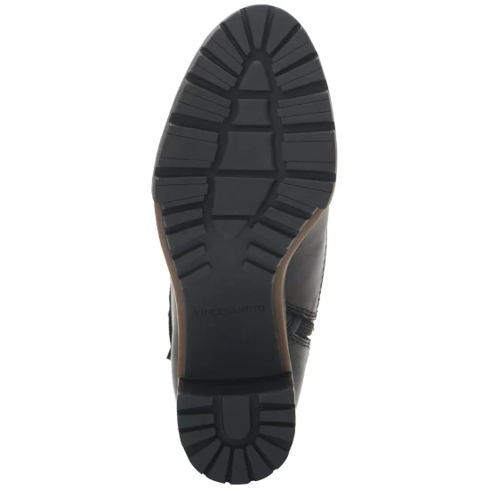 Vince Camuto pairs D-ring hardware and quilted collars of a hiker-inspired look with striking stacked heels in the cool Donenta booties.