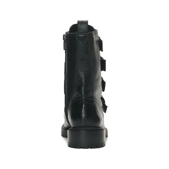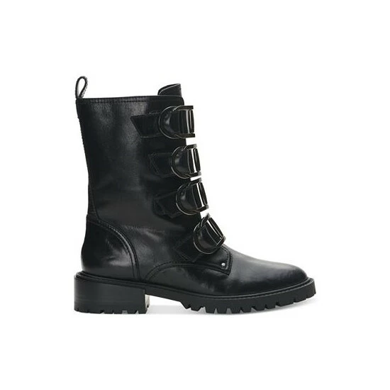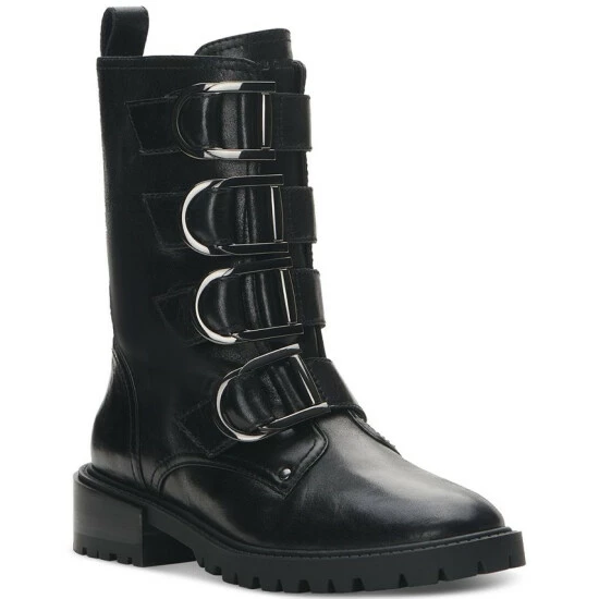 Buckled straps add moto attitude to the bold combat style of Vince Camuto’s Frishea boots.