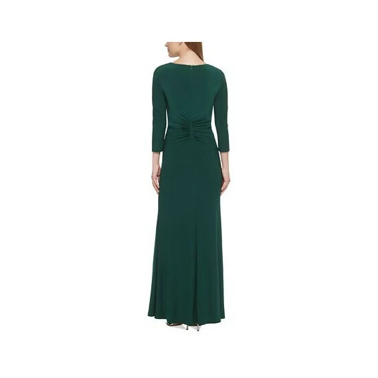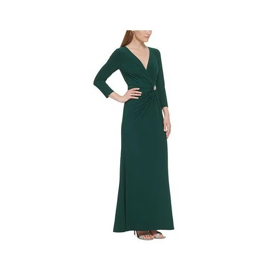 Channel sleek elegance for your formal look with this stunning petite gown from Vince Camuto, a V-neck design with a touch of sparkle at the front.