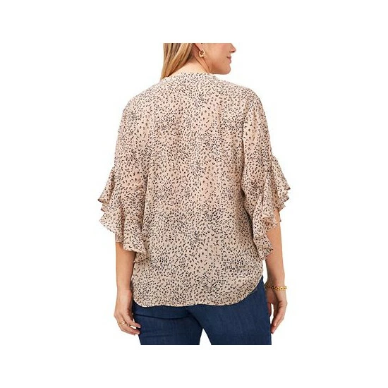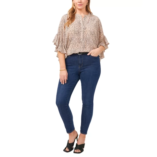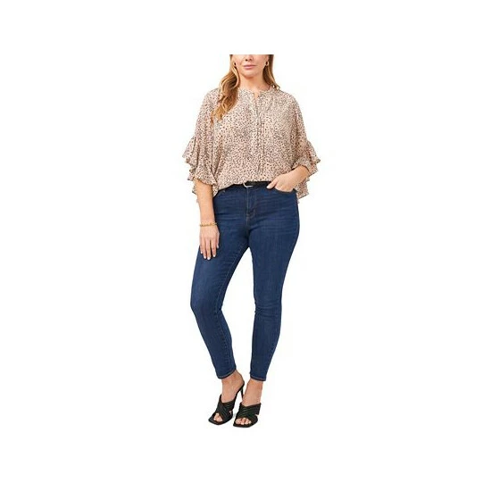 Look fierce this season in Vince Camuto’s flutter-sleeve plus size blouse.