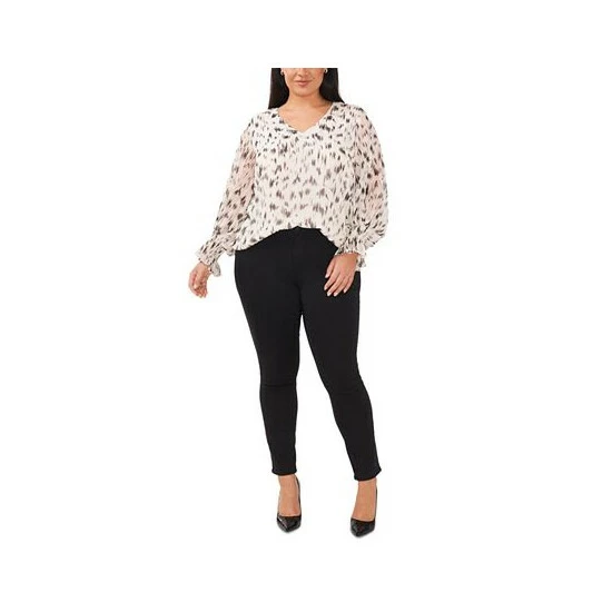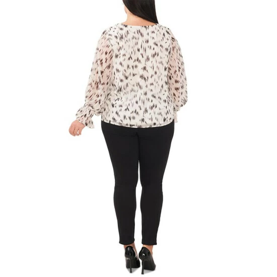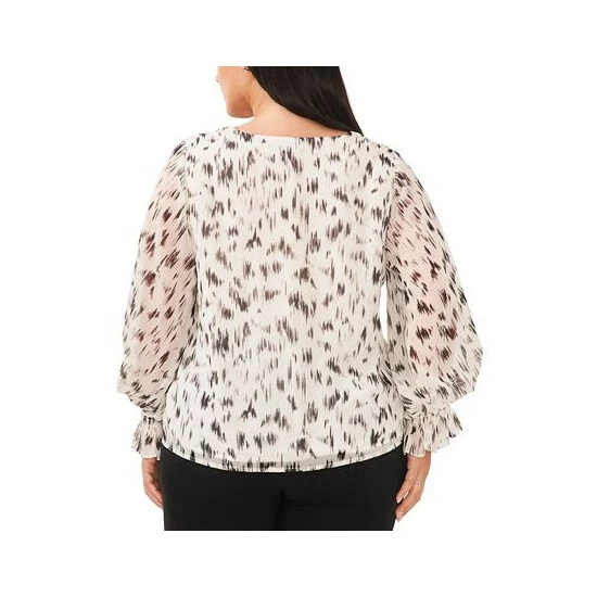 Stylish from front to back, this plus size Vince Camuto top is designed with roomy blouson sleeves and a gorgeous print.