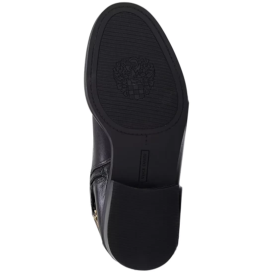 A draped tankini top falls over a pair of high-waist bikini bottoms in this chic swim look from Vince Camuto.