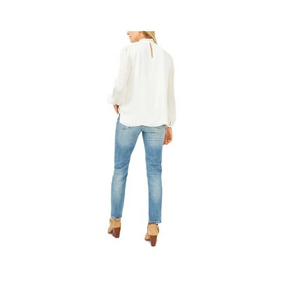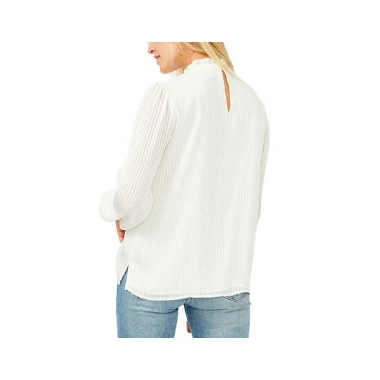 We love the way soft blouson sleeves complement a ruffled neckline on this subtly-striped top from Vince Camuto.