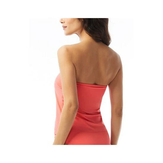 A look you can wear strapless or as a halter, Vince Camuto’s tankini top is draped at the front with a breezy, split flyaway ruffle.