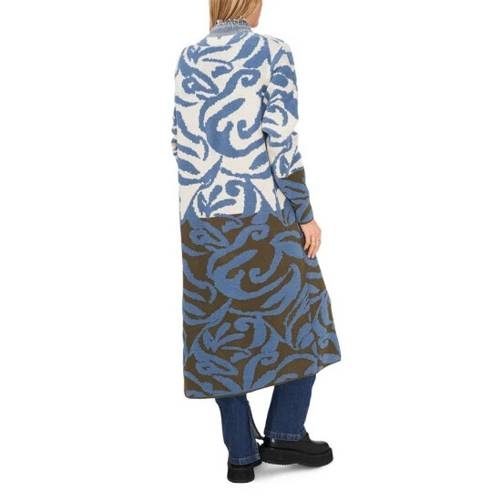 A stunning update for your favorite separates, this long and lean Vince Camuto cardigan features colorblocked jacquard prints trimmed in fringe