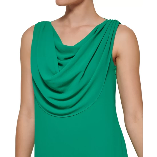 A swingy shift dress from Vince Camuto looks even more lovely with a delightful cowl neckline in front and a low scoop back.