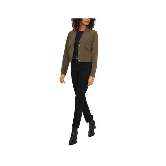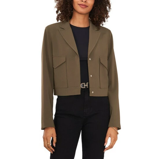 Powered by oversized flap patch pockets, Vince Camuto’s cropped blazer is tailored with a modern tone.