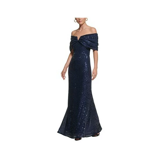 Shine, sparkle, and standout in this women’s gown from Vince Camuto, a sequin must-have design for any standout closet.
