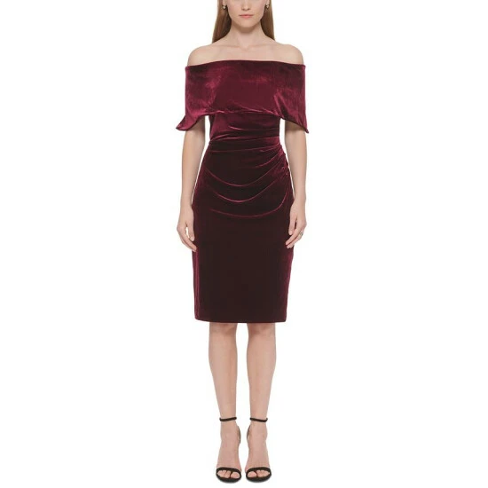 Luxe velvet is so glam and so festive on this party-ready sheath dress from Vince Camuto. Its off-the-shoulder neckline shows off just the right amount of skin.