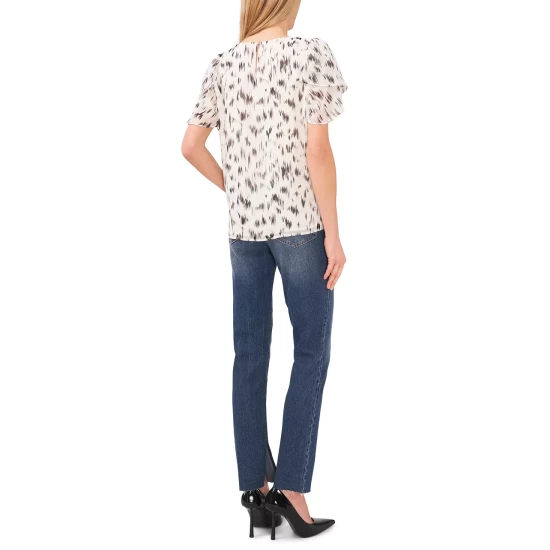Tiered petal sleeves take this Vince Camuto blouse to a stylish new dimensions. A sleek print keeps the look current.