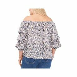 Best Sale ๐ Vince Camuto ๐ฉ Women’s Printed Stand-Collar Sheer-Sleeve Blouse New Ivory ๐